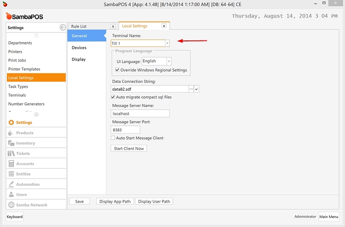 Till 1’s Local Settings should appear like this and Till 2 should be selected for other terminal.