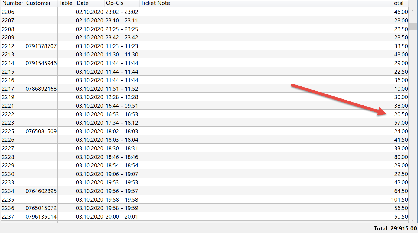 Ticket lister will show the total of the tickets…including Taxes & Calculation Types (tips, service charges, etc).