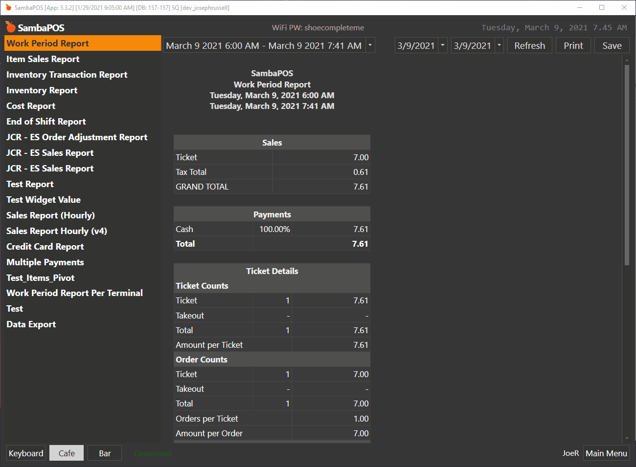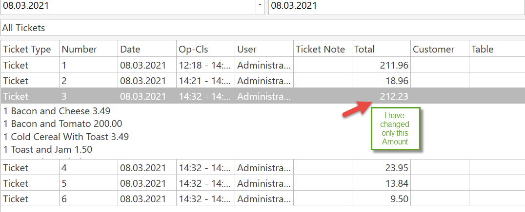 @Jesse I use sql express with V5, just tested with old version too, it is same. If Workperiod is not closed, every changes in Ticket are reflected in Ticket List amount or Report. Once Workperiod is closed, it is possible to make changes in a Ticket, but it is never reflected in report. Even if Ticket Date and Payment Date are not changed. I change only Amount of this Ticket. I am sure this Ticket is in this Workperiod.