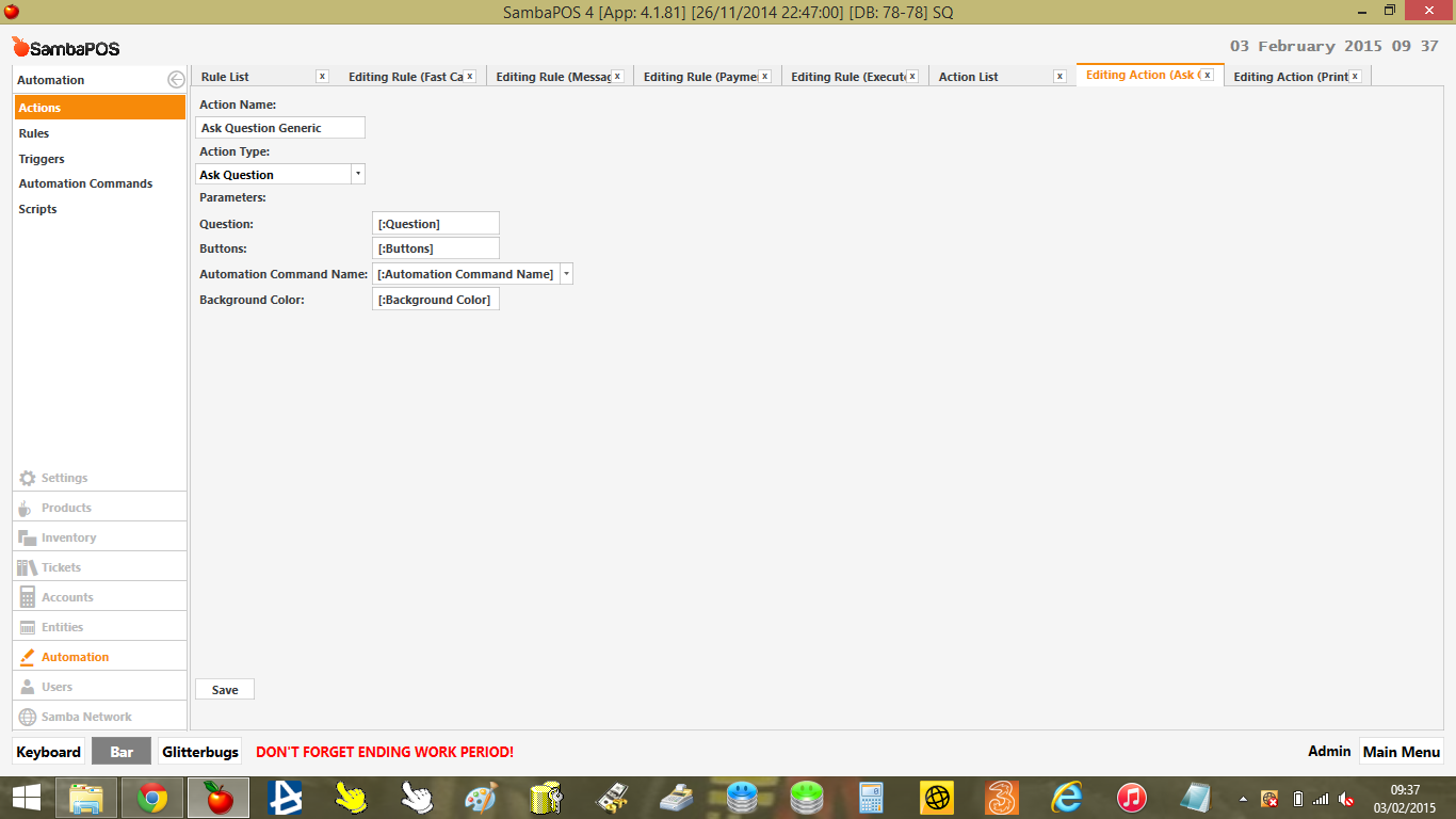i want to be able to press the fast cash button eg $5, ticket is paid, ticket is automatically closed then the change due message box to appear so that when I press OK to confirm change has been given out the POS then automatically logs out.