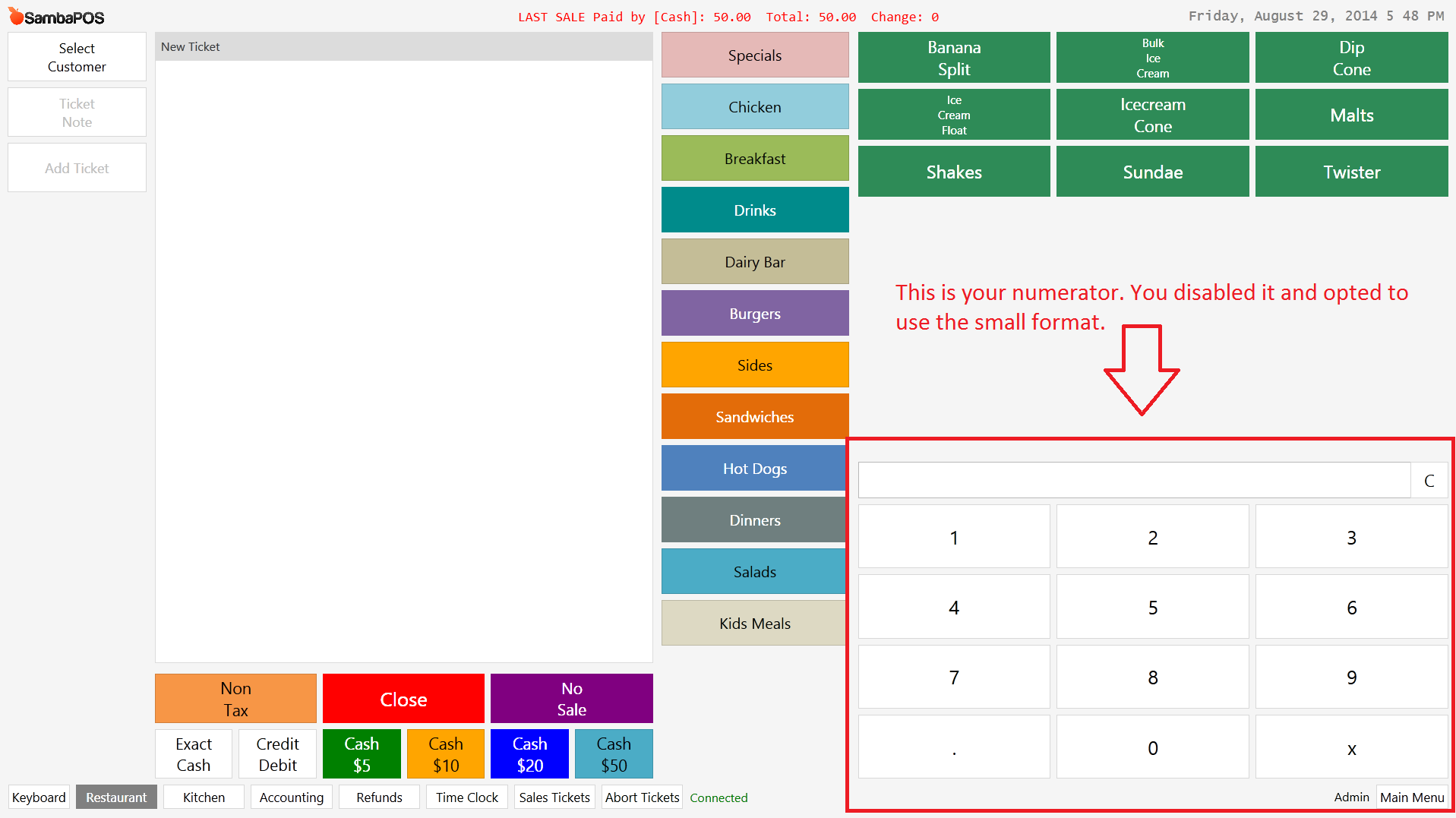 Your problem is because you disabled it… your using small format instead… on a computer its fine because you can use your numberpad on keyboard… but on a tablet or phone… if you disable it then you cannot use change price.