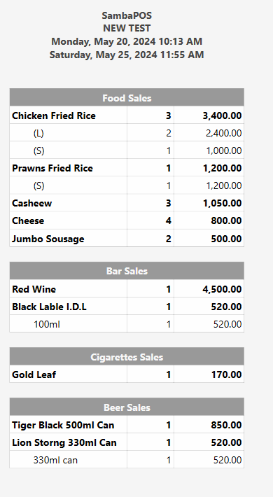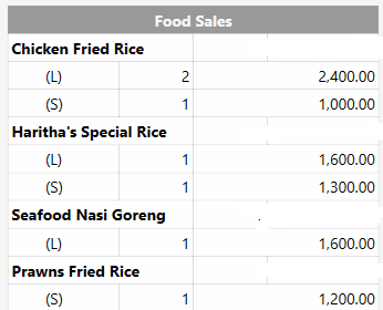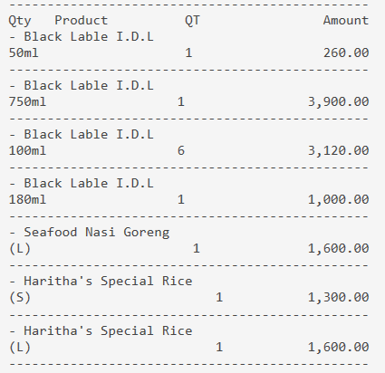 Example Bar section,i don’t want them to view what has been sold on the kitchen department