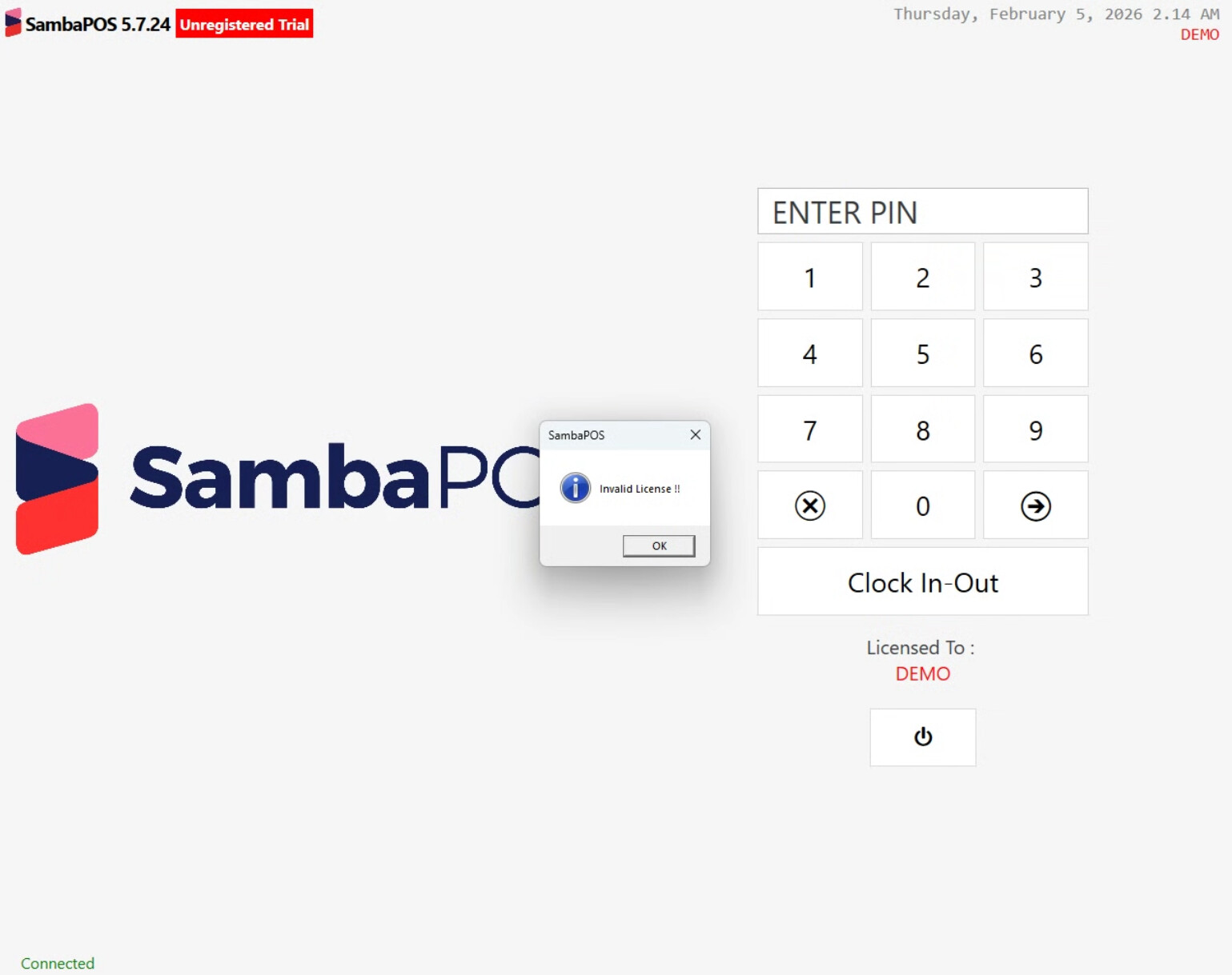 the system is working with the database etc. and connected to message server… just license wont validate. when you try and do a sale it says invalid license.