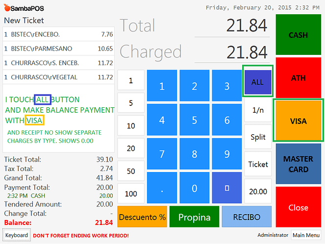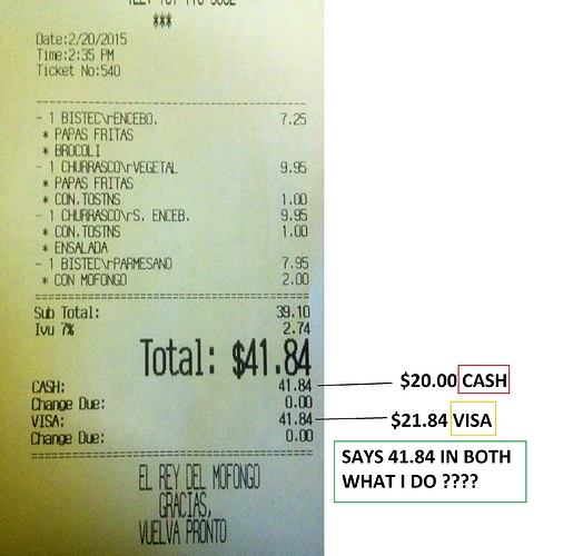 In most cases y have two type of payments. But on the receipt shows 0.00 on payment types. The issue is in receipt SEE PHOTOS!!! THANKS