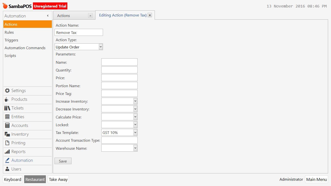 Hi, can i remove TAX by pressing a Button from any ticket before printing of bill if I can so please tell me how to add button to remove TAX from Ticket before print Bill. Thanks
