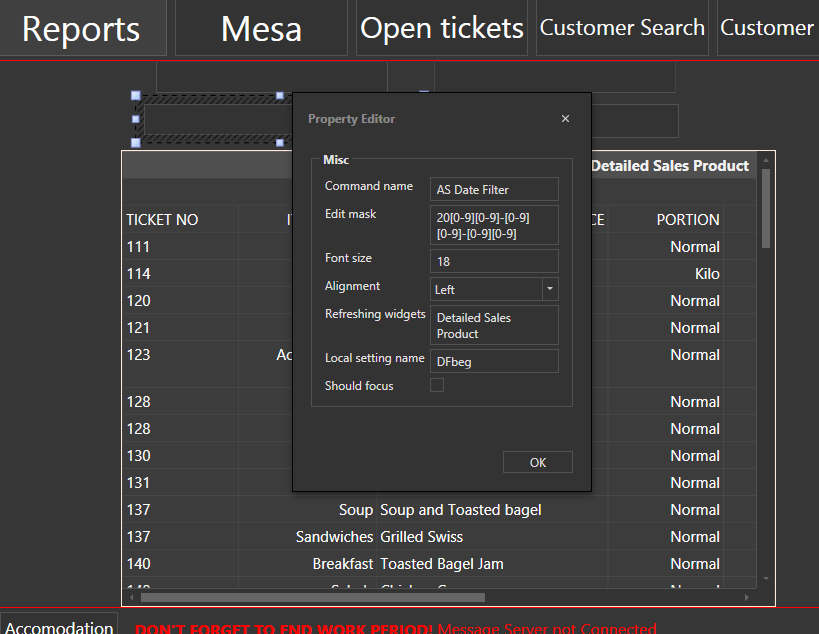Your Report Widget needs a Name. This is very important. The Report Widget Name is located under “Properties” as opposed to “Settings”. My screenshot shows 2 “Properties” dialogs for the Report Widget. The top one is actually the real “Properties” (where the Widget Name “WP Workperiod Report Widget” is specified), while the lower one is actually the Widget “Settings” dialog where the Report Name (“Workperiod Report”) is specified.