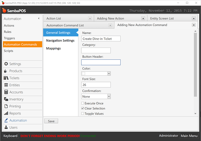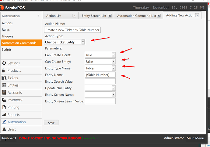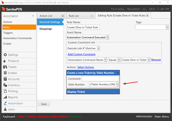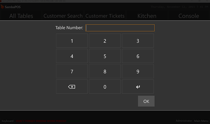 Yes now were on the right track!.. I was thinking a custom entity screen with a automation button for creating a new ticket for dinning in and before it creates the ticket it has a number pad pop up to type in the entity number and then goes to the ticket.