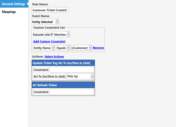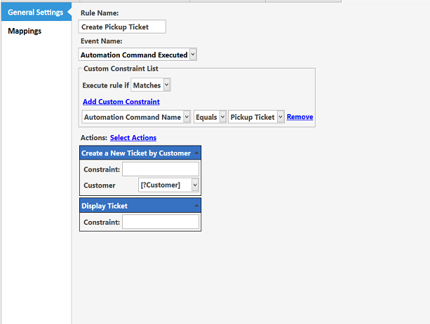 Created a new rule that works when Create Ticket button clicked. Added two actions I’ve recently created.