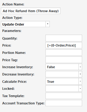 it seems the action cant have quantity as a minus number AND price set as a minus number so i can either have the price set correctly as a minus, or inventory set correctly.