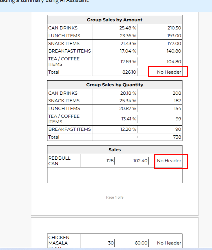 Item sales report empty rows in metrik as well when export to pdf shows “No headers” It appears correctly when view in samba pos. please advise