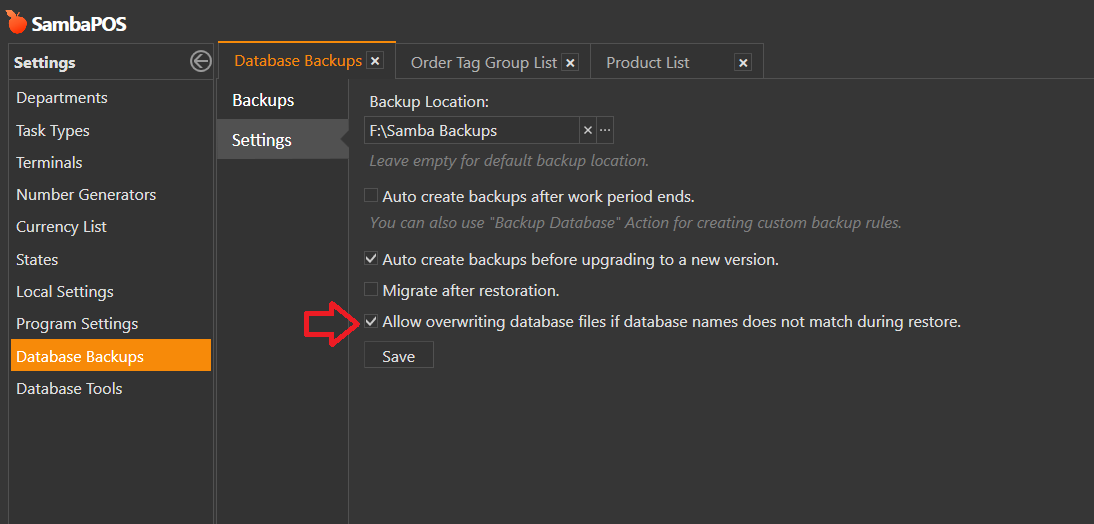 Save it and shutdown SambaPOS and then restart it… then go to Market activate the tool again and then from the settings page of that tool check the box to overwrite file name then try to restore it.