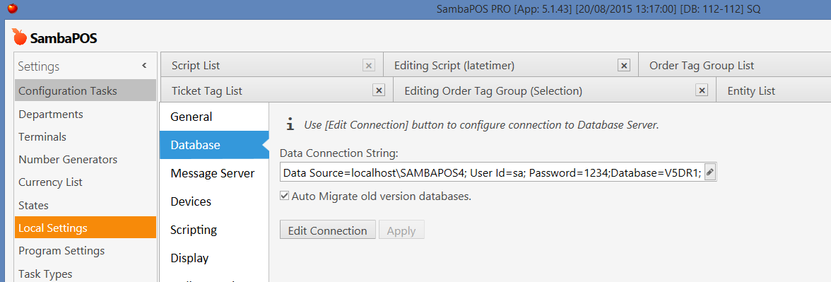Then - after reading emres post – i typed in SambaCard.sdf in that field… then restarted Sambapos – but then SambPos refused to start – giving error: " Cant connect to databse with current setting. You can check and modfiy the connection string shown below.