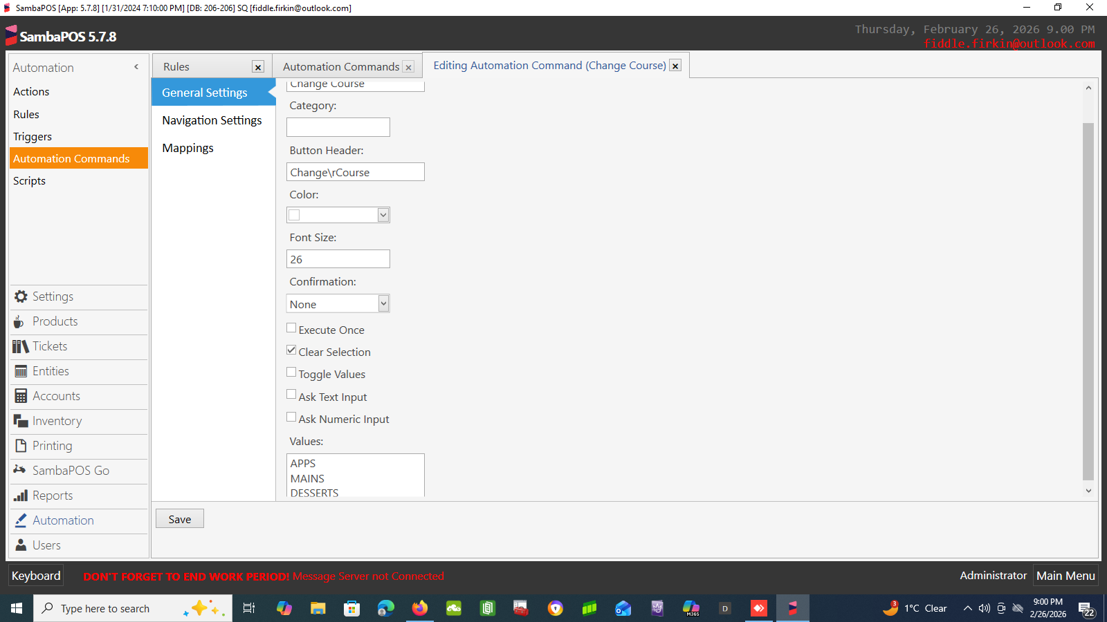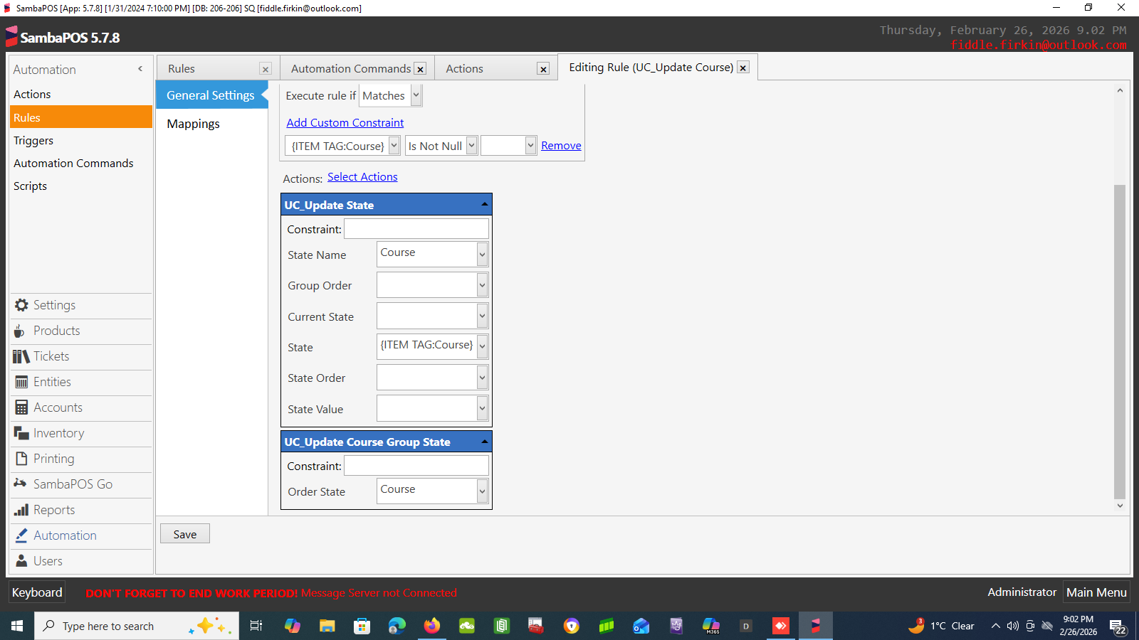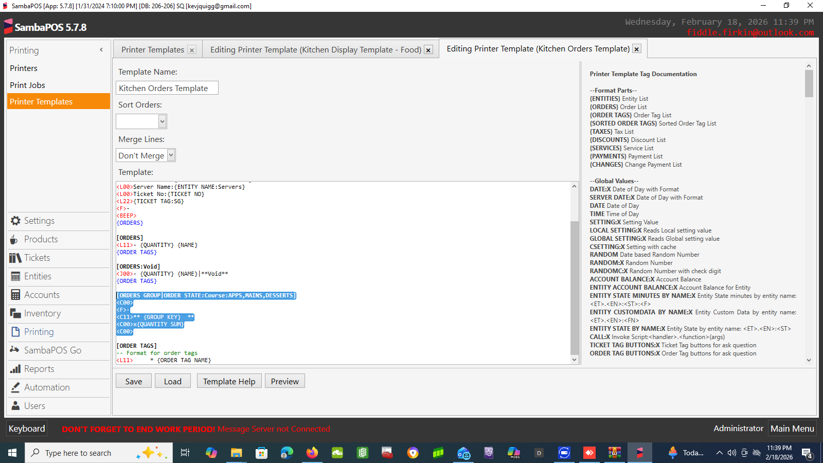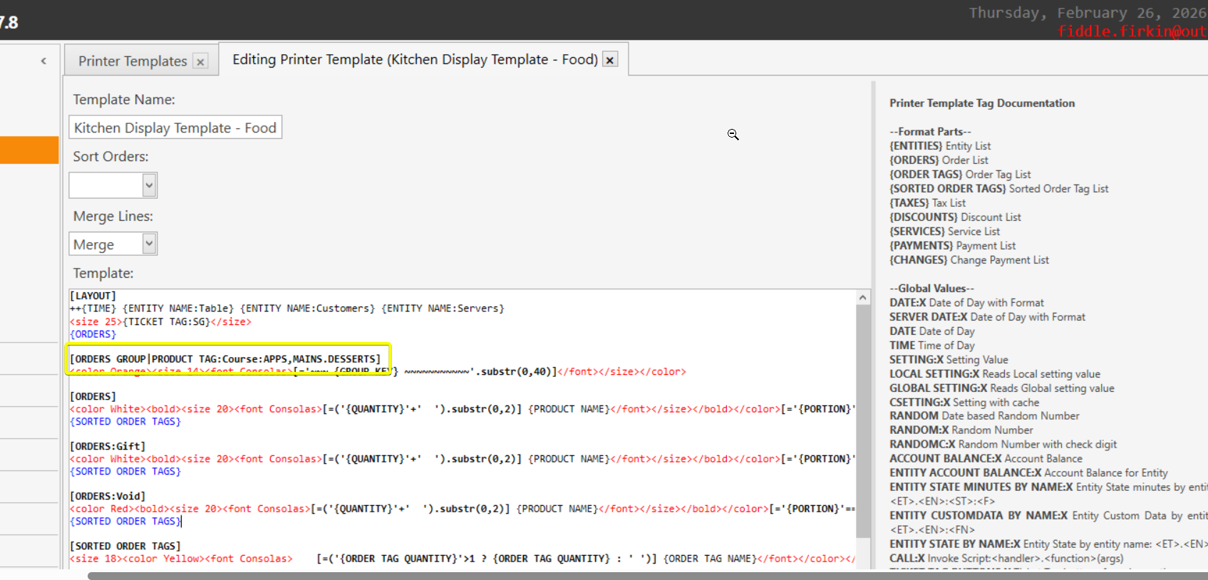 I have everything working great (thanks for this!), except when printing to kitchen display. If I change any item to a different course before sending the order, the kitchen display doesn’t recognize the change? Works for the kitchen printer fine but not the display, so I figure my problem is with the printer template for the kitchen display but no idea how to fix it! I’ve included screenshots for all automation and of the order and kitchen display. KD Template below…