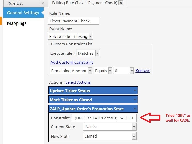 Thanks Q - its a pity the Ticket Payment Check Rule ->Update Orders Promotional State constraint could not have an Order Line Test. Are there any? It would be so easy. Obviously the Update Order State must “fire” for each Order Line as all Orders are sequentially changed front Points -> Earned in this event.