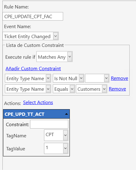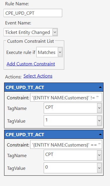 CPT ticket tag = 1 (rule fired by the event Ticket Entity Changed, even tough: Entity has not changed (it was NULL, it is still NULL).