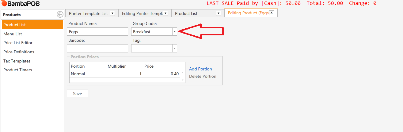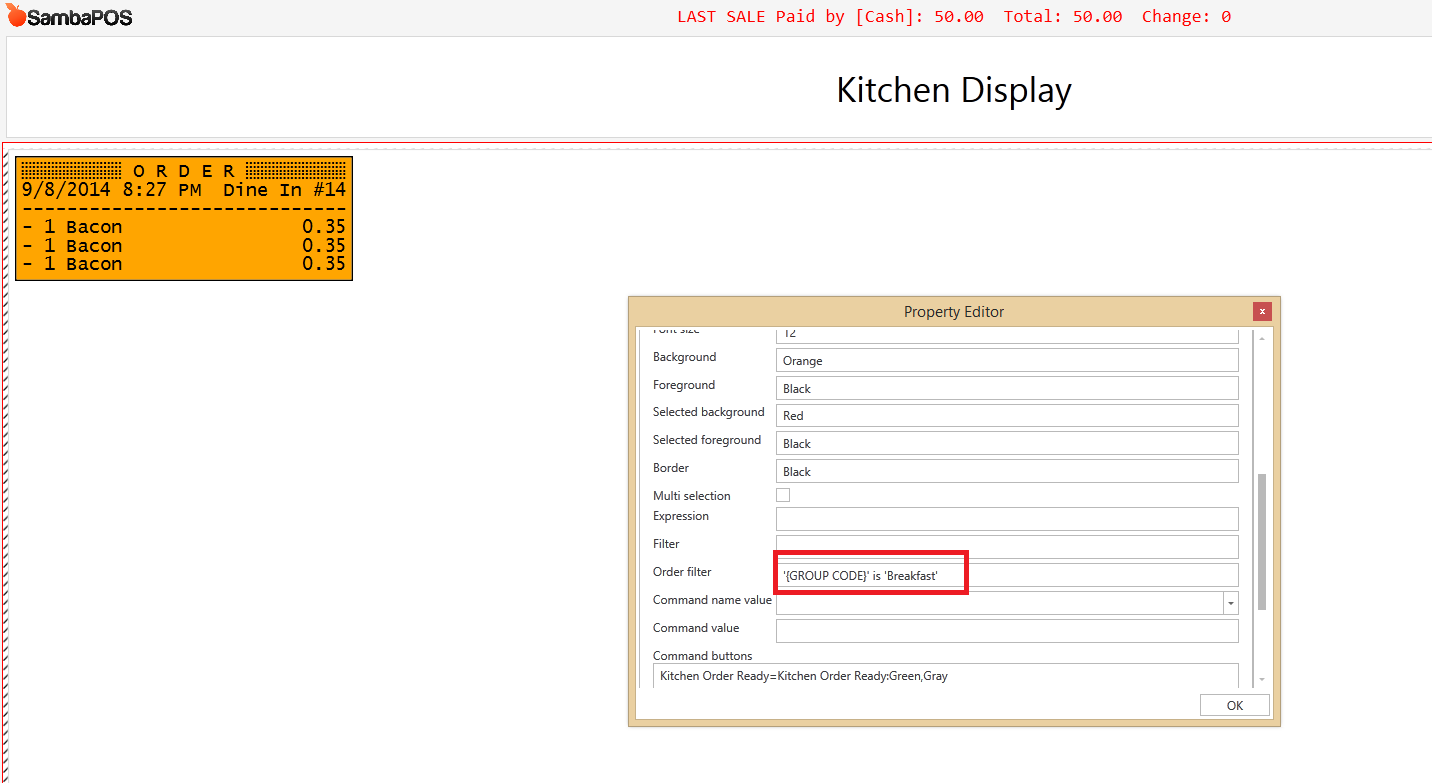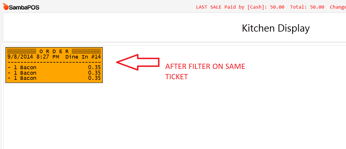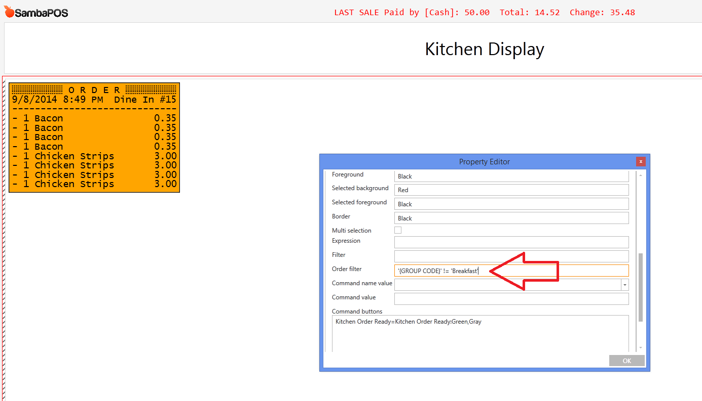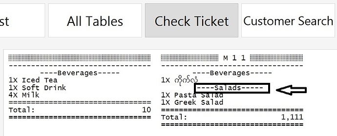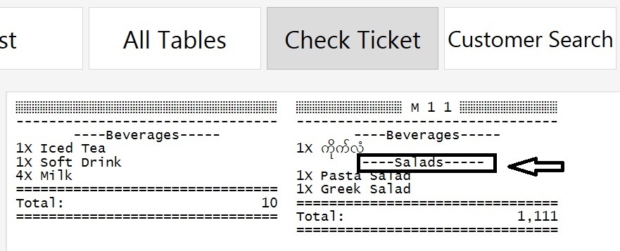 '{GROUP CODE}' != 'Drinks' could work too if your Group Code for drink products was Drinks This would exclude just drinks from tickets instead of only showing salads.