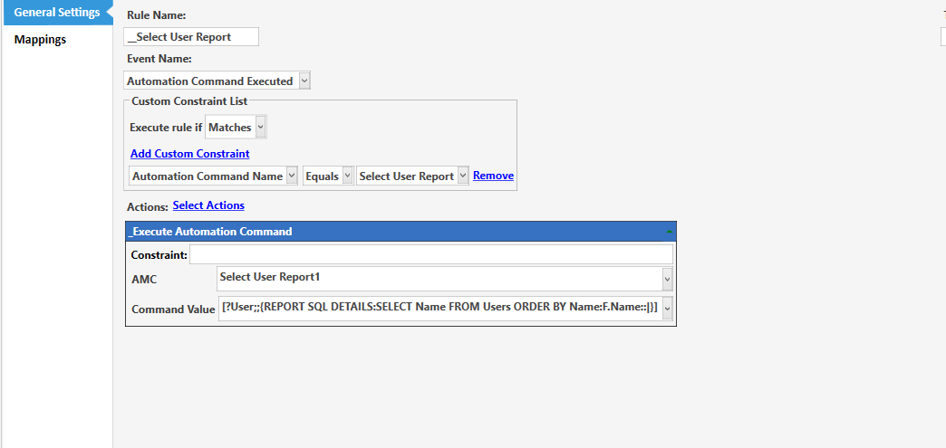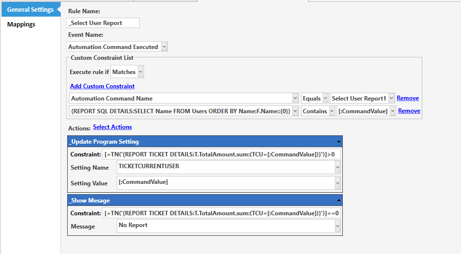 Create Autommation button: Print Report & Select User Report