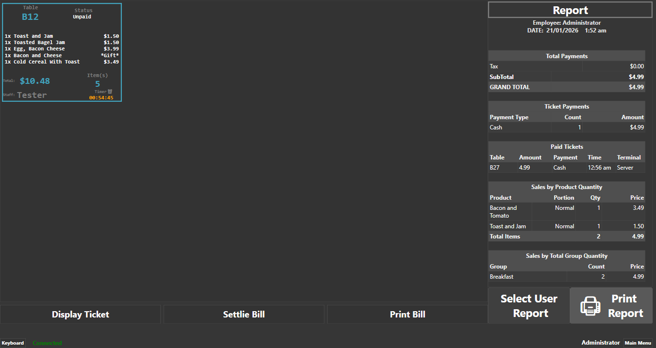 Kitchen/Bar Display using Task Printer - separate displays for Food and Drink