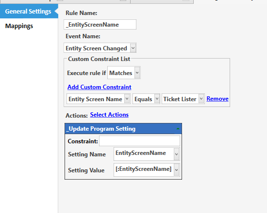 this rule will store the entity screen name so it remembers to go to Ticket lister when ticket closed