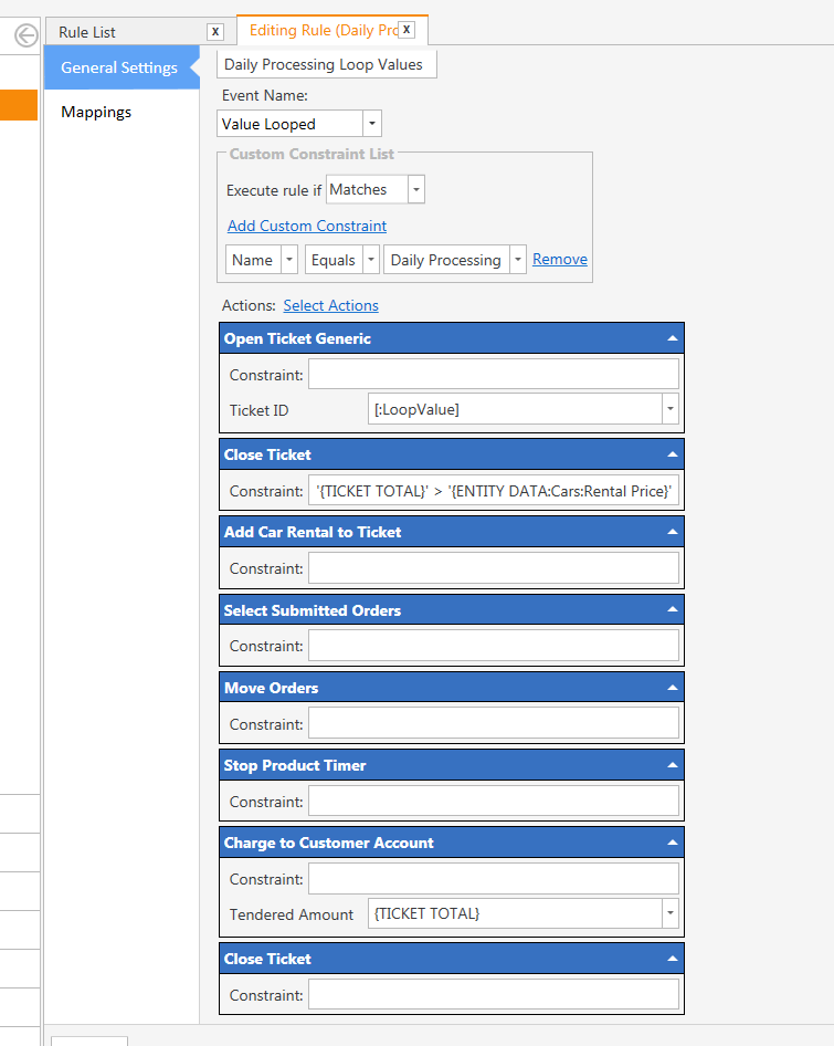The rental product price is drawn from an entity field (where entity is the car for hire)