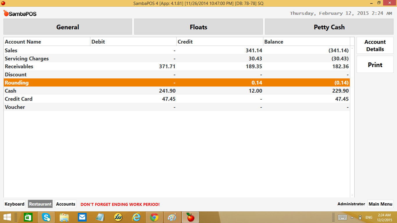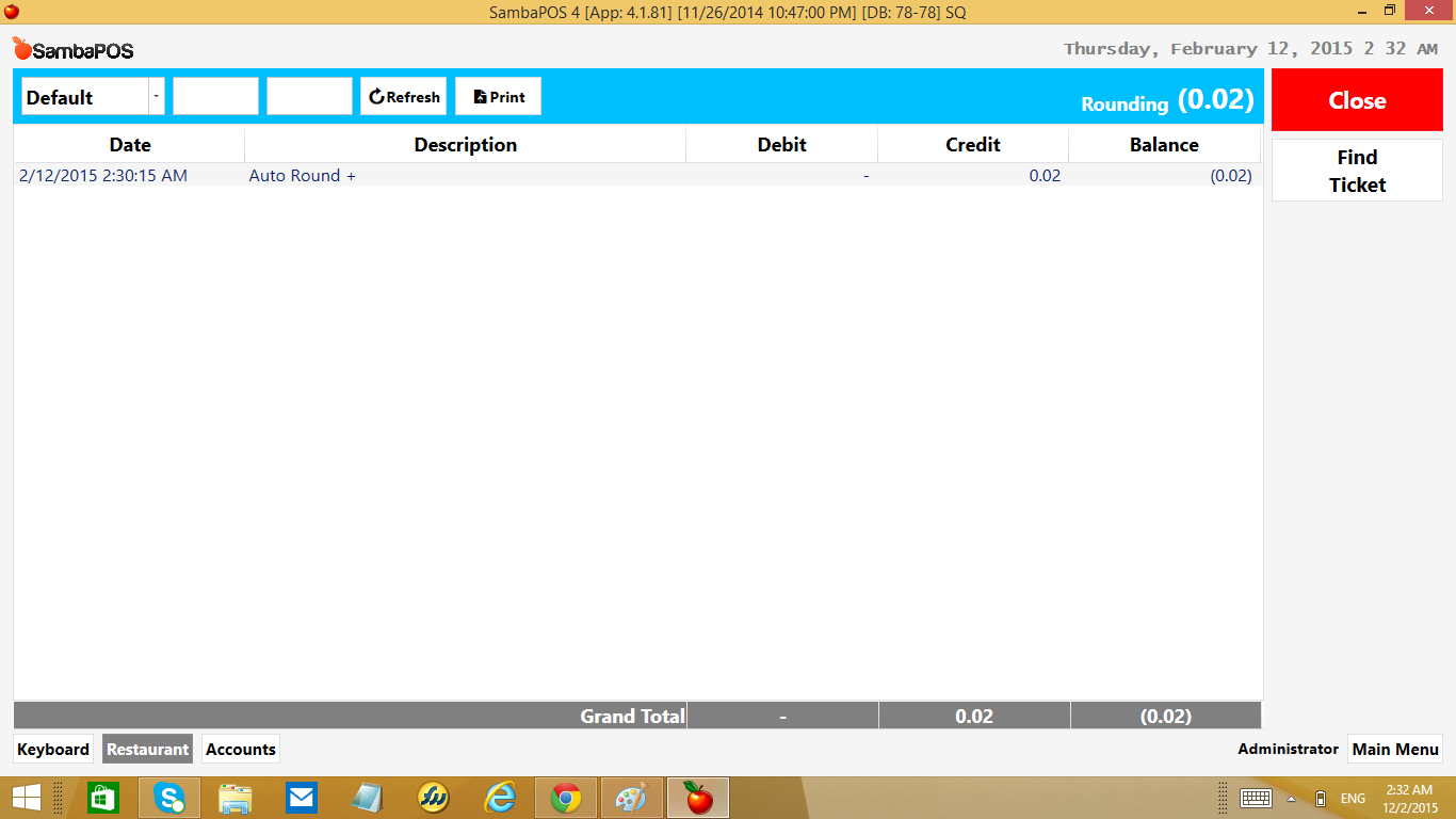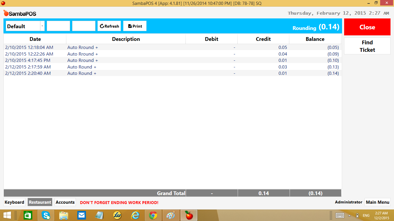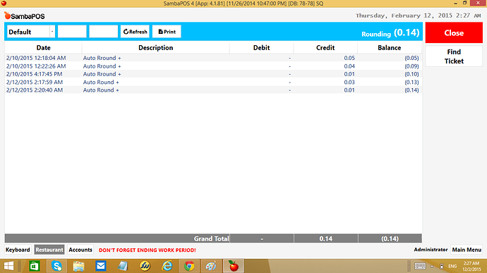 His calculation is working and he is collecting the right amount of money but if he selects a dish from his menu that he has defined as price =0 for product and he uses Order Tag to add price to Order… it records the calculation total into receivables but it does not record it into rounding account so receivables just keeps growing and growing…